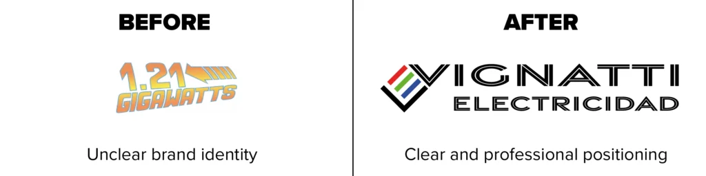 The business originally operated under the name “1.21 Gigawatts”, a creative but unclear brand that was not directly associated with electrical services. In a small city of approximately 20,000 inhabitants, this lack of clarity made it difficult for potential customers to quickly understand the service offering.